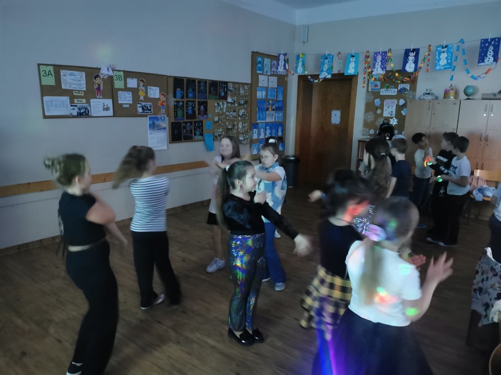 Zadanie 14- Move like Jagger-konkurs taneczny do piosenek po angielsku, dyskoteka karnawałowa klas III, śpiewanie hitów muzycznych w języku angielskim.
