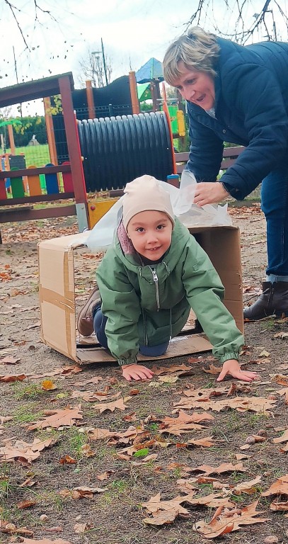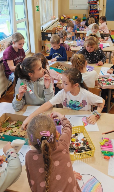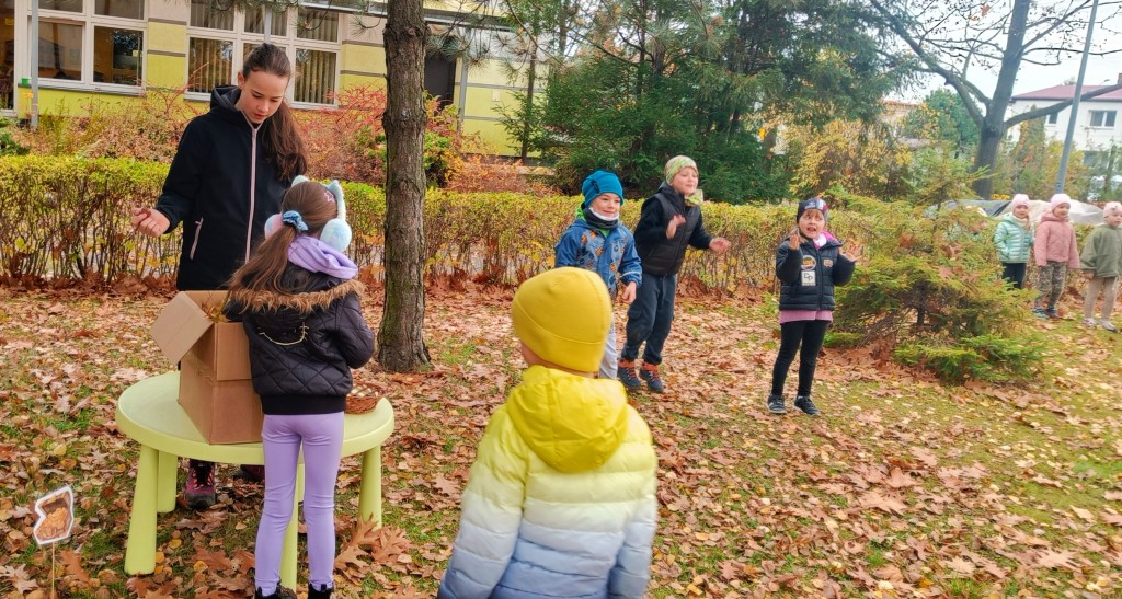 Na młodych odkrywców czekało wiele wspaniałych zadań – od rozwiązywania zagadek o zwierzętach, przez dopasowywanie liści i gałązek różnych odmian drzew do ich nasion i owoców, aż po emocjonujący tor przeszkód „Leśna przygoda”. Wśród stacji pojawiły się chociażby: ścieżka wiewiórki, skoki żabki, most jeża, nora zająca, rzeka bobra, tunel lisa, prasie gniazdo, leśna koszykówka, ptasi lot czy skarby natury. Wspólna zabawa i nauka przyniosły mnóstwo śmiechu, ruchu i prawdziwej współpracy. Bo... co ważne - podczas zajęć nie było rywalizacji – zamiast tego dzieci działały ramię w ramię, pomagając sobie i wspólnie zdobywając pieczątki do jednego, drużynowego koszyczka. Uczyły się, że siła tkwi nie w wyścigu, lecz we współdziałaniu i wspólnym dążeniu do celu. Tym celem było zdobycie zaszczytnego tytułu „Przyjaciół Przyrody” – i każda para rąk miała w tym swój udział!