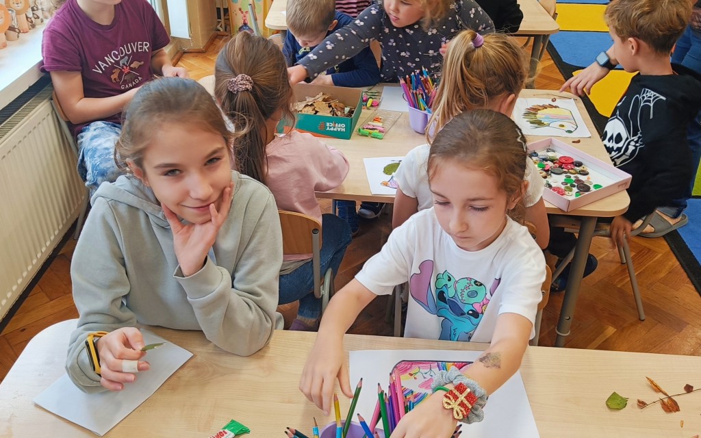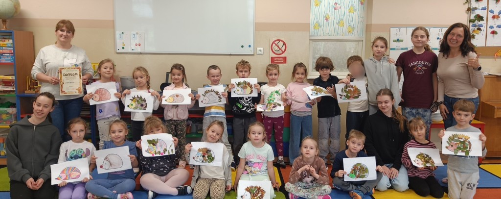 W części plastycznej mali artyści stworzyli swoje wyjątkowe prace „Mój przyjaciel jeżyk”, wykorzystując różne materiały: listki, igiełki, a także kolorowe guziczki, kredki i plastelinę.