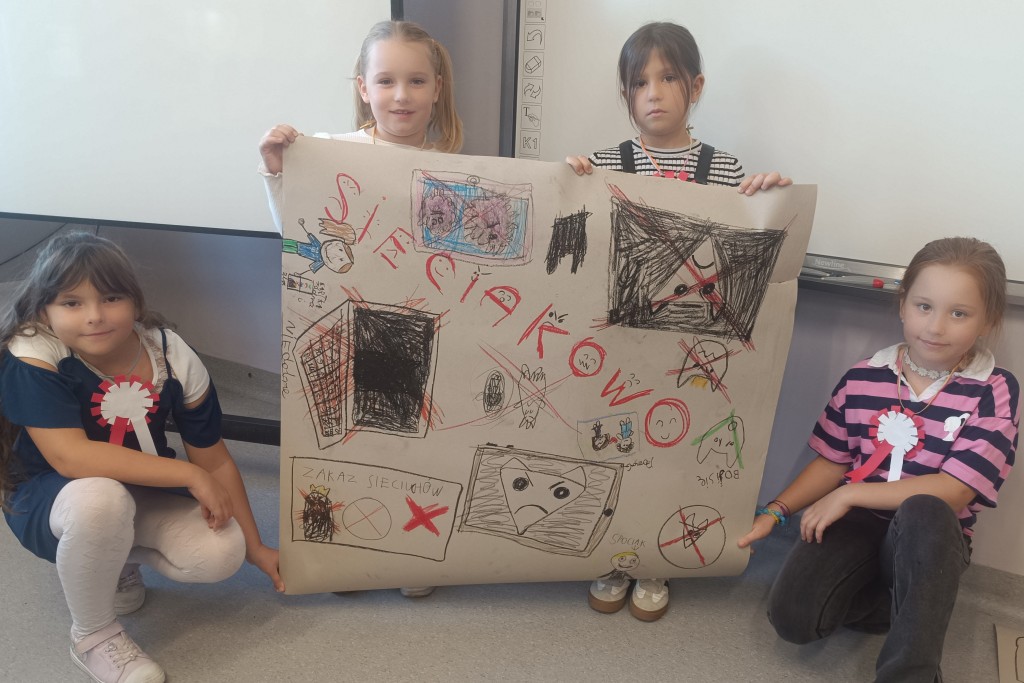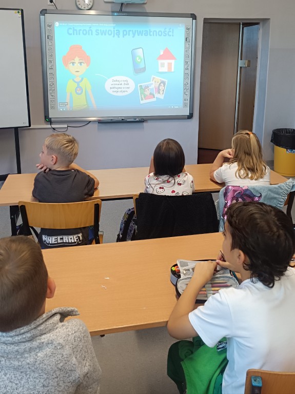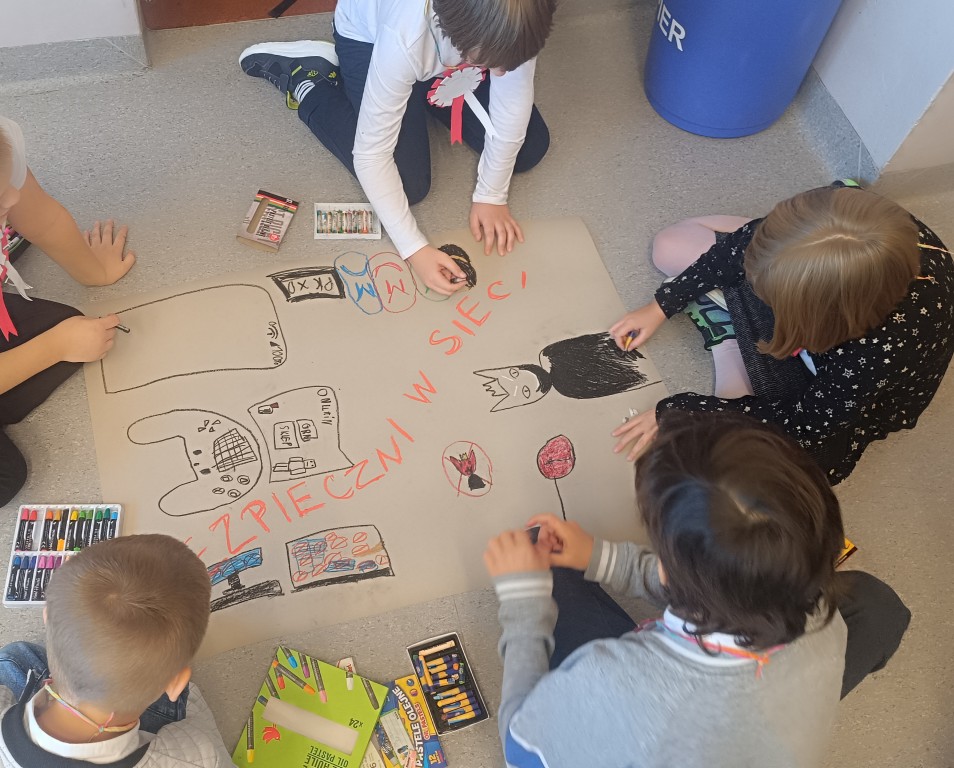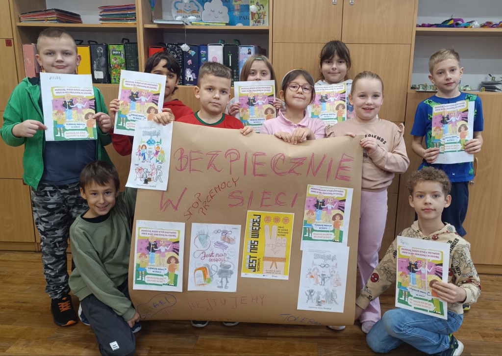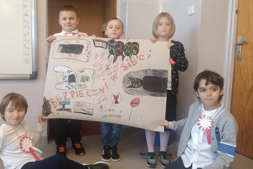 Uczniowie klasy 2b realizują tematy programu Sieciaki.pl, współpracując z fundacją Dajemy Dzieciom Siłę. Na zajęciach edukacji informatycznej realizują tzw. „Sieciakowy kurs”, poruszający aktualne problemy i zagrożenia, z którymi mogą się spotkać w Internecie. Dzieci poznały bohaterów programu: Spociaka, Netkę, Kompa i Ajpi, którzy pilnują przepływu dobrych treści w sieci. Są też bohaterowie negatywni tzw. Sieciuchy na czele ze swoim władcą – Czystym Złem, który knuł straszne plany – jak oszukać lub wykorzystać osoby w Internecie. Wymyślona fabuła programu walki dobrych Sieciaków ze złymi Sieciuchami stała się świetnym tłem do nauki dla dzieci o zagrożeniach płynących z Internetu. Uczniowie wzięli też udział w lekcji online pt: "Szkodliwe treści i nadużywanie ekranów". Uczestniczyli w webinarze z projektu "Sieciaki.pl" w ramach Ogólnopolskiej Kampanii "Dzieciństwo bez przemocy". Realizacja takich programów z uczniami jest niezwykle ważna, ponieważ uwrażliwia uczniów na zjawisko cyberprzemocy w sieci, a także uczy jak reagować i chronić się przed negatywnymi treściami płynącymi z Internetu.