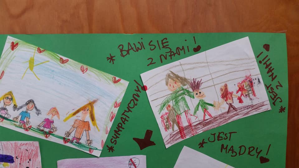 Klasa I a przygotowała piekne obrazki ilustrujące idealnego nauczyciela i sytuacje szkolne, podczas których nauczyciel jest pomocny i ... lubiany :) Wszystkie obrazki zostały omówione na lekcji, przyklejone na plakacie i podpisane przez wychowawczynię.